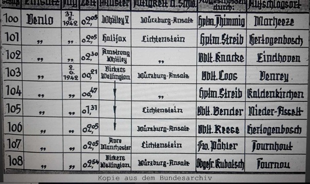 Opgestegen op 1 juni om 22.59 van vliegveld Finningley voor een bombardement missie naar Essen Duitsland. Dit toestel maakte deel uit van een groep van 1000 bommenwerpers. Op de terugweg werd het toestel rond 01.30 uur boven Noord Limburg aangevallen door een nachtjager van de 3./NGJ.1 opgestegen te Venlo gevlogen door Oberleutnant Jacob Bender.